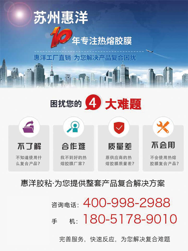 超纖皮革復合是熱熔膠(網)膜的重要應用行業之一,根據不同的復合以及工藝要求,選用的規格也存在不同,歡迎咨詢工作人員拿樣試用